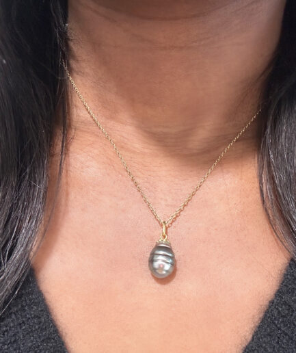Gold and Tahitian pearl pendant “Ravahina”