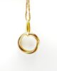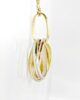 Adorable pendant from the 50s formed by 3 rings in 18-carat white, yellow and pink gold held by a mobile bail, like a miniature triple wedding band to be worn around the neck. This jewel is both evocative of a vintage style (evocative of the “Trinity” style created in 1925) and a timeless design.