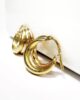 Sublime pair of open hoop earrings from the 50s formed by 3 rings in 18k yellow, rose and white gold. This jewel is both evocative of the “Trinity” style created in 1925 by the house of Cartier and the classic hoop with its timeless design. Secured by a Catalan clasp for easy on and off, this classic piece will blend seamlessly with your daiky looks.