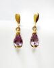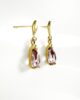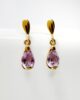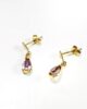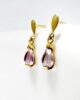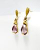 Sublime pair of 80s earrings in 18k gold pendant style featuring a 0.5 carat pear-shaped amethyst in claw setting held by a movable teardrop-shaped bail. Held on a mobile bail, the buckles move with each movement, capturing the light and revealing the reflections of the sapphires. Secured by a butterfly clasp, this pair will be as suitable for everyday wear as it is for your most sophisticated outfits.