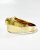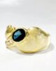 Sublime ring from the Art Deco era in 18-carat gold whose band consists of a shimmering gadrooned band on one side and three gadrooned bands on the other, one set with 5 brilliant-cut diamonds of 0.01 carats. At the center of the ring is nestled a beautiful 0.7 carat oval-cut ultramarine blue sapphire in bezel setting. An elegant piece typical of the period (30s) and at the same time borrows a unique character.