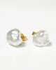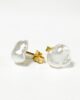 Elegant pair of 70s earrings in 18k gold set with baroque water pearls in a luminous iridescent white. Secured with a butterfly clasp, these elegant earrings are perfect for everyday wear and bring a touch of light to the face.