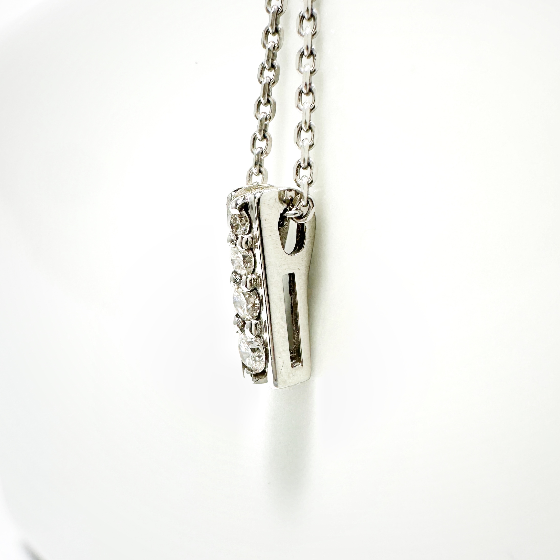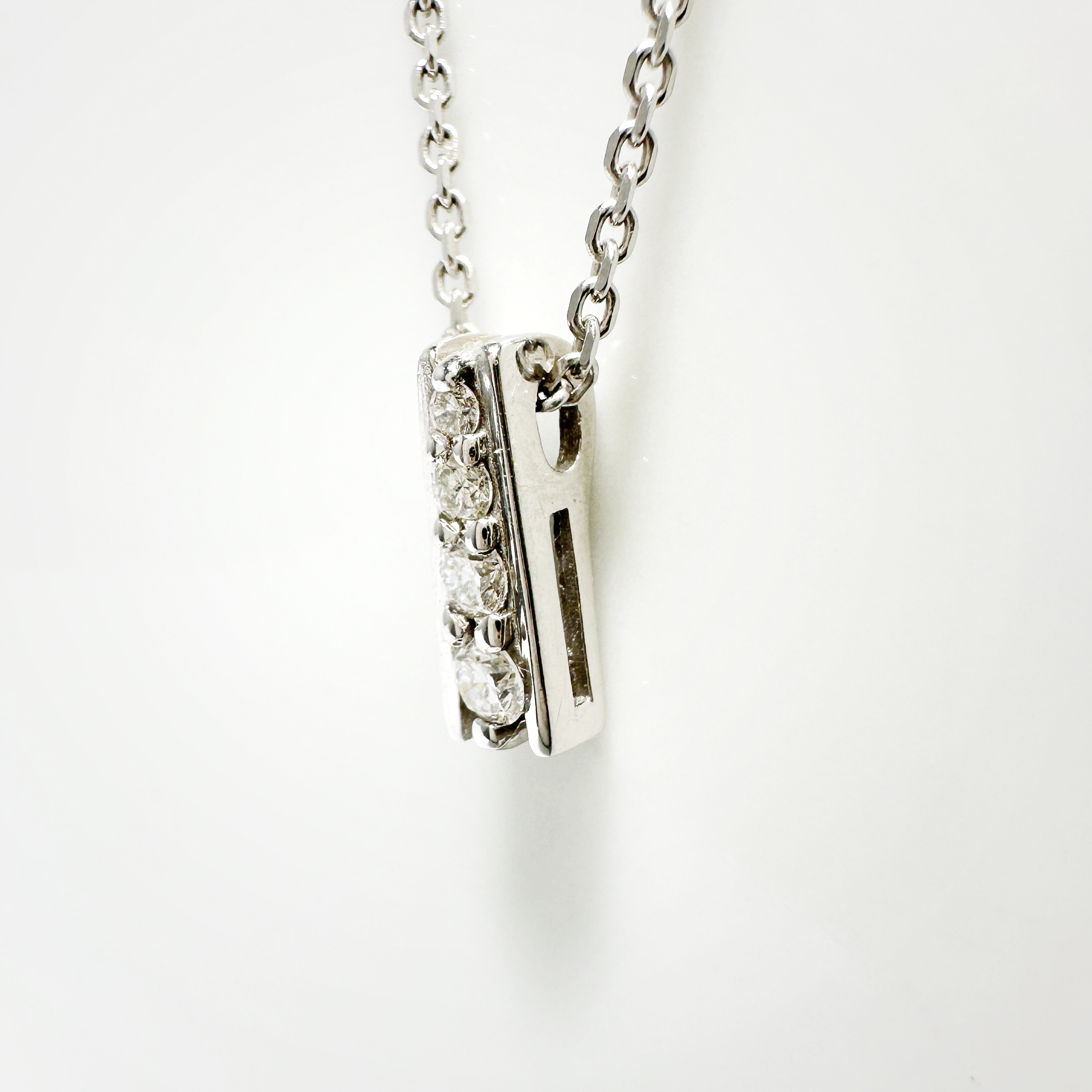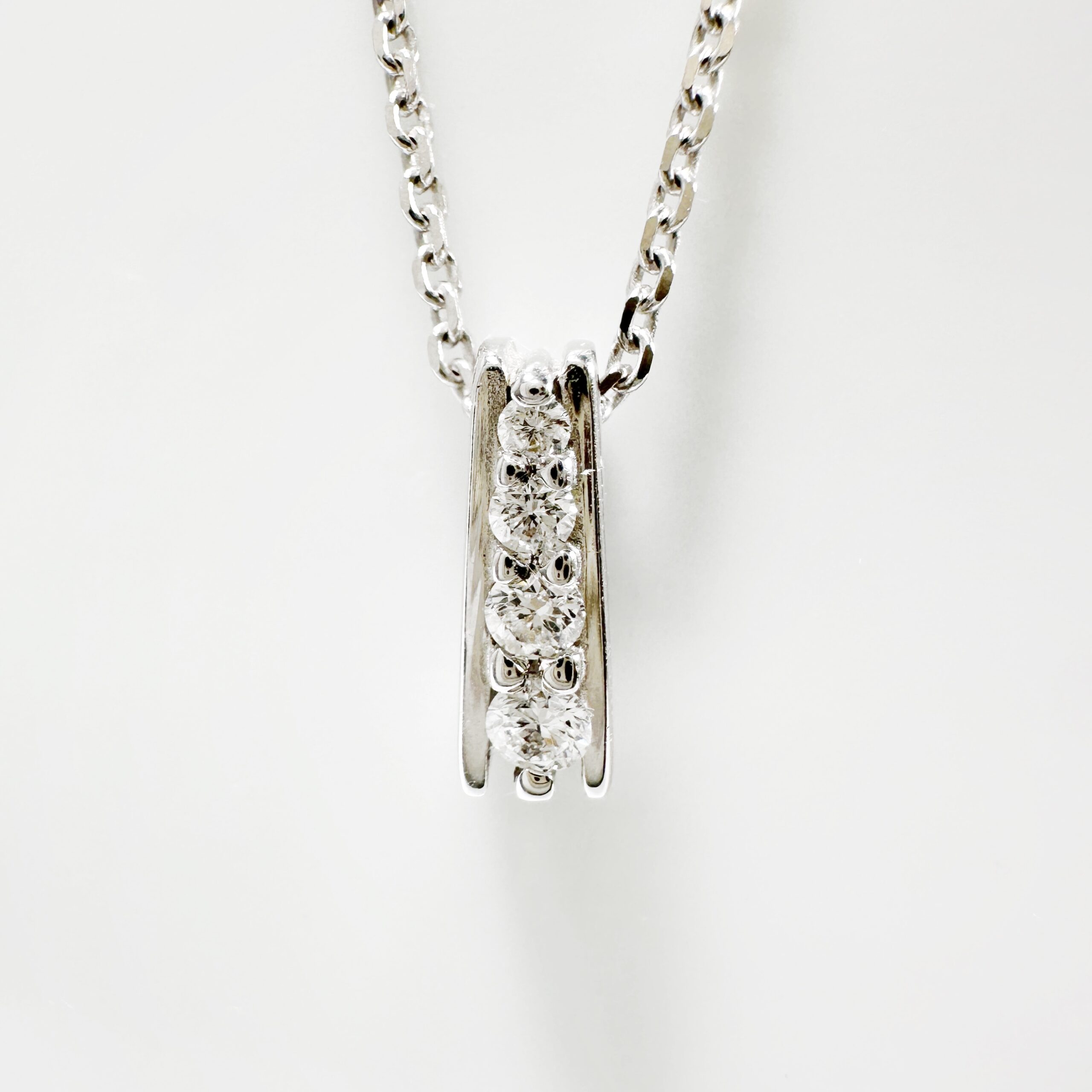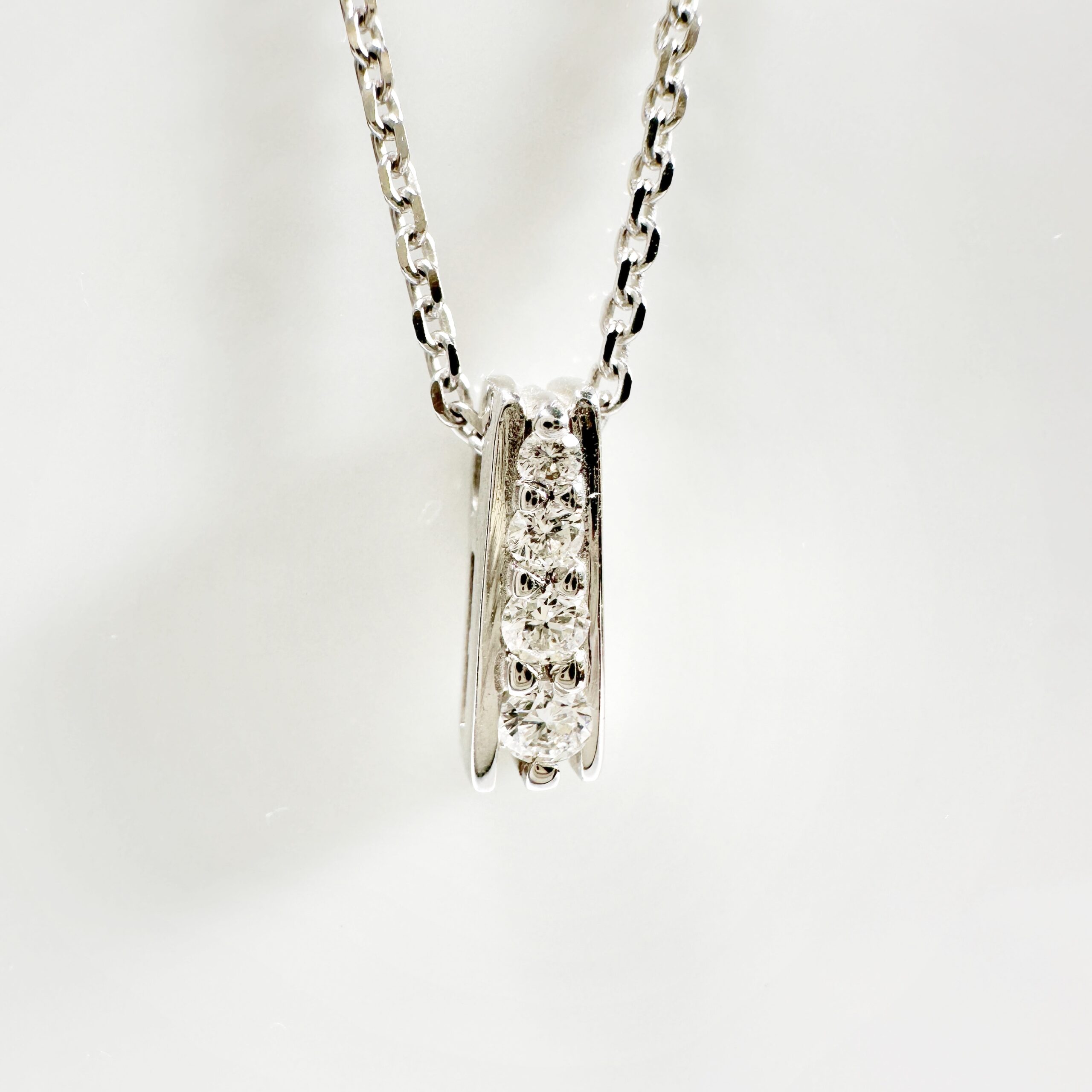 Superb necklace from the early 2000s formed by a white gold belcher link chain on which is mounted a splendid pendant formed by a succession of 4 diamonds of 0.01, 0.015, 0.02 and 0.03 carats respectively. In grain-setting, in D color (totally colorless) and VVSI clarity, they are framed by two thick lines in shimmering white gold for a most striking effect. A hypnotic and classic piece, a timeless piece to wear every day.