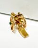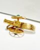 Exceptional pendant from the 50s in 18 carat gold representing a cannon decorated with rosette motifs in engravings. Equipped with 2 movable wheels set with 0.1 carat dagate cabochons, this richly crafted and detailed piece will be worn or admired like a collector’s item. A highly symbolic piece, a reflection of exceptional know-how.