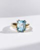Sublime ring from the 70s in 18-carat gold enhanced with an emerald-cut aquamarine stone. A feminine and elegant ring with a sleek design, just like its central stone, a lagoon blue with fascinating purity.