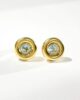 Stunning pair of 18k gold 70s stud earrings set with 2 0.5k brilliant cut aquamarines in a delicate lagoon blue. Each stone is highlighted by a gold rim, bringing both sparkle and light to the jewel. An elegant piece to wear every day.