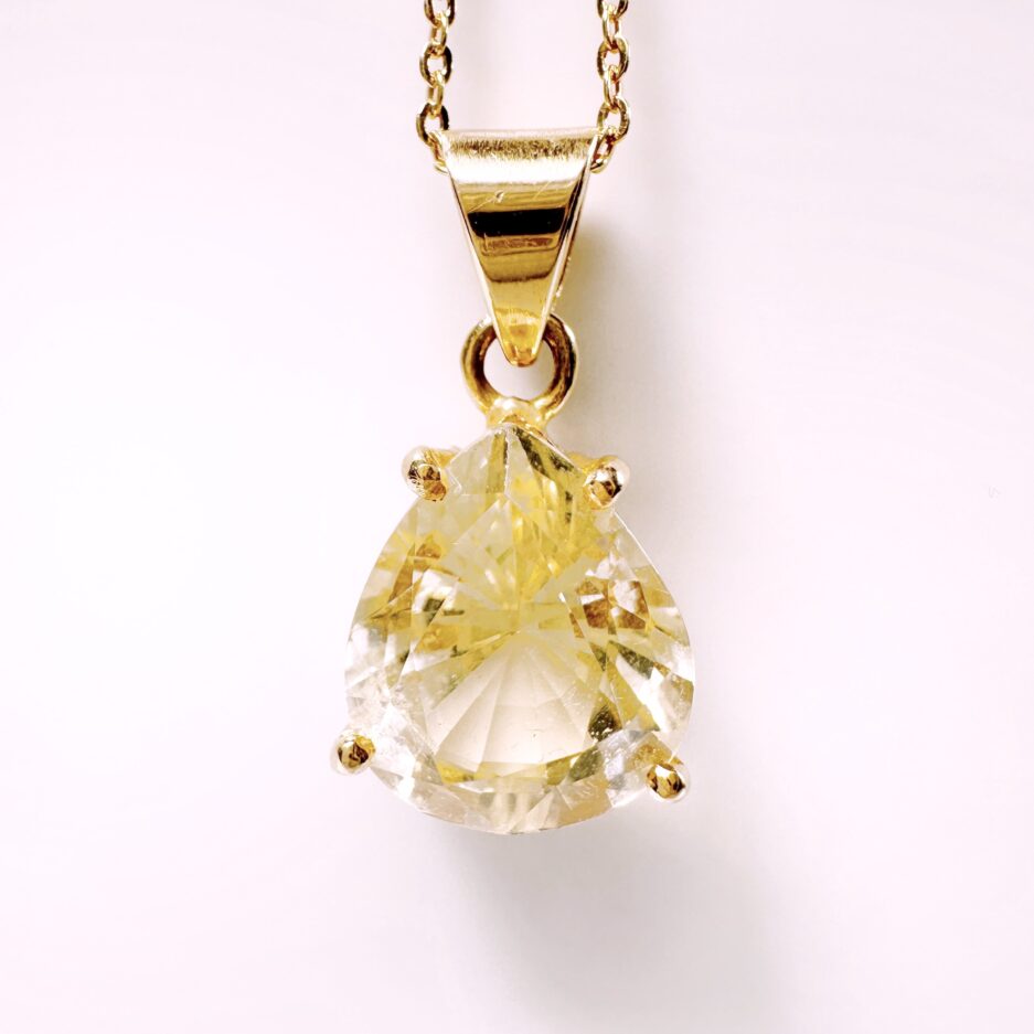 Gold and citrine drop pendant “Amandine”