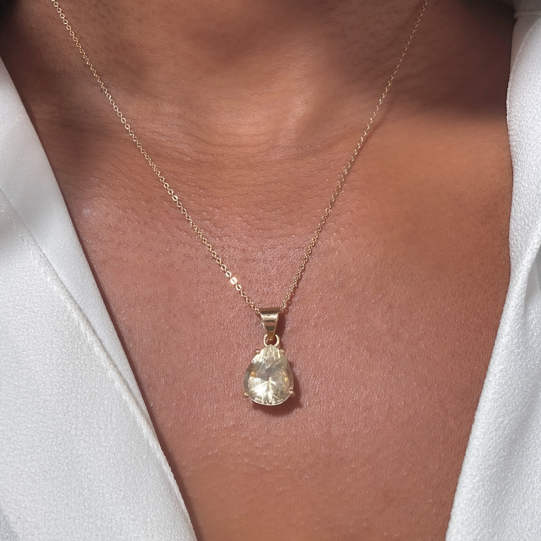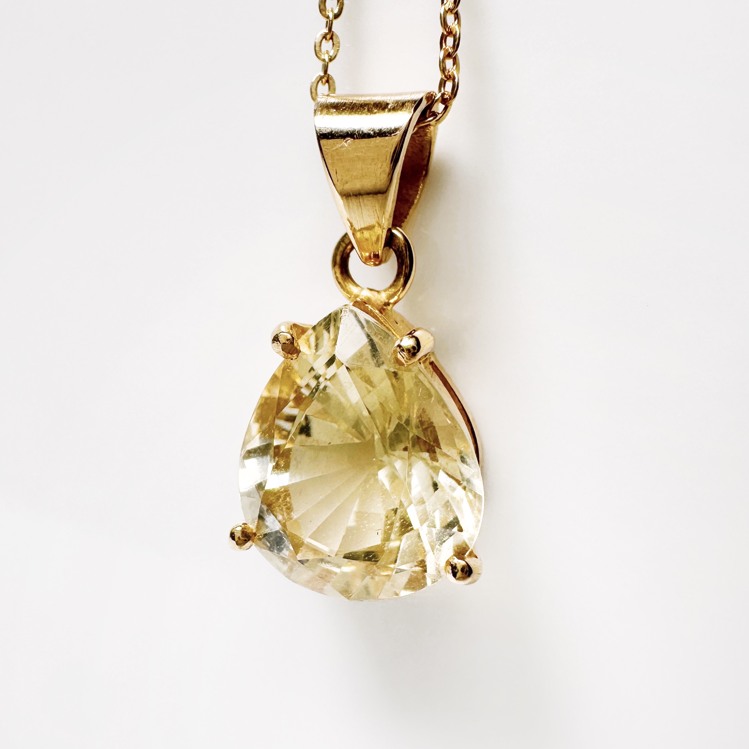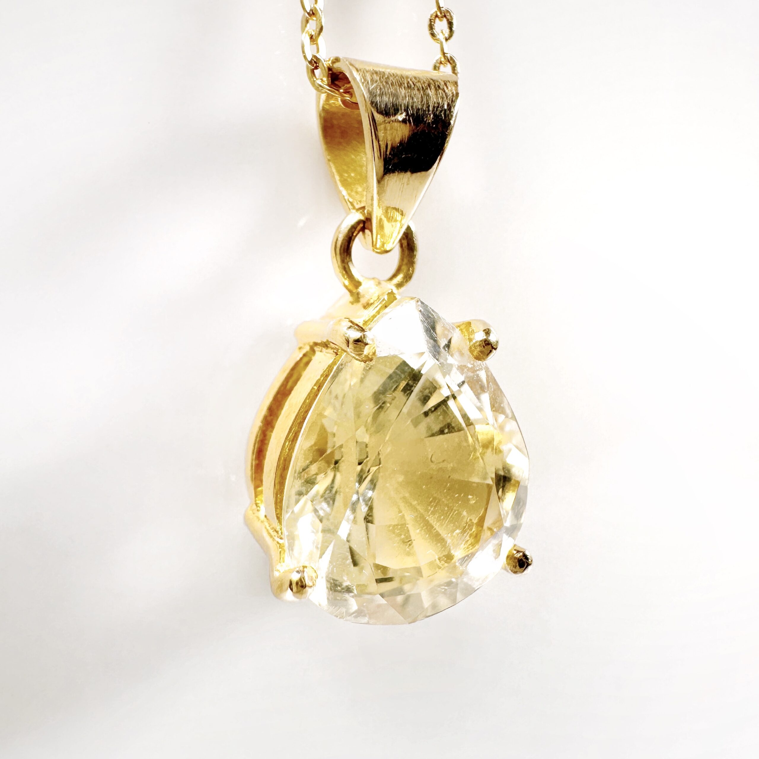 Gold and citrine drop pendant “Amandine”