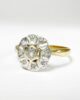 Sublime 19th century ring in 18k yellow gold centered with a rosette or daisy motif in centered white gold with rose-cut diamonds of approximately 0.01 carats, a central diamond and 8 halo diamonds, all in grain setting. An elegant and finely crafted ring, a witness to a bygone era and a timeless feminine style.