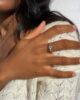 The Story: Diamonds help us define the era of antique jewelry, as their cut has evolved over time. From handcrafted rose-cut diamonds from the sixteenth century to the old-cut diamonds from the nineteenth century to the modern 58-faceted brilliant-cut diamond, laser-cut for optimal light reflection, the diamond can betray the age of the jewels. That being said, this ring from the 20s features two diamond cuts, revealing that its central diamond was later replaced, which often happens with jewelry which had several lives. As for the name of the ring style, the Garter ring was a very popular engagement ring style in the 1920s. It takes its name from the accessory of the same name worn by the bride on her wedding day. It is a ribbon that is placed above the knee in order to hold the socks in place.