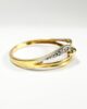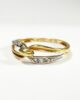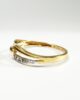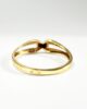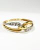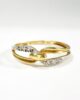 Sublime ring from the 70s in 18-carat gold formed by a band evoking a stylized infinity sign joined by a gadrooned gold knot. Two bands of the central motif are in gadrooned yellow gold while the other two, in white gold, are each set with 3 brilliant-cut 8×8 diamonds. Showing the skin through, this feminine and refined piece, all voluptuous curves, is ready to hug your finger.