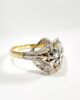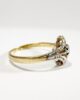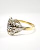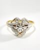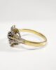 Adorable 19th century 18k gold “young girl” (“jeune fille”) ring set with a rose-cut diamond nestled in the center of lines of white gold ribbon set with small rose-cut diamonds of approximately 0.01 carats crisscrossed on a yellow gold band. A ring with an elegant and sophisticated design, to be worn every day, alone or layered.