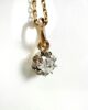 This new TransfÓ or transformation signed ÓNÍSÌ PARIS is a nineteenth-century white and yellow gold hat pin transformed into a solitaire set with a sublime brilliant-cut diamond of 0.1 carat VVSI clarity and F (colorless) color. Mounted in a prong setting on a white gold bezel worked in a open-work corolla for an incomparable brilliance, it is attached to a mobile bail for optimal play of light and movement. This timeless piece can be worn alone on a thin chain to give pride of place to the diamond, or layered with other pendants.