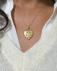 The story: Heart-shaped medallions belong to the family of sentimental jewelry, dedicated to celebrating a loved one. Known in the United Kingdom as “Forget me not” and popularized by Queen Victoria, they often honored thought. In France, it is not a designated flower that is found in these designs, but the cherry remains a recurring motif in medallions of this type.