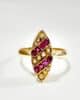 Sublime 19th century marquise ring in 18-carat gold composed of 5 alternating lines of 10 fine pearls and 8 brilliant-cut rubies of 0.02 carats. A superb one where the contrast of vibrant rubies and luminous pearls is enhanced by the sparkle of gold, while the oblong shape of the ring elongates the finger.