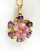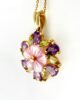 Gold and mother-of-pearl, amethyst and peridot flower pendant “Lavinia”
