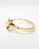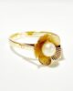 Sublime ring from the 50s in 18 carat gold featuring a cultured pearl blooming on a corolla bezel. The grooved petals of the flower catch the light with each movement for the most striking effect. A feminine piece with delicate work to wear every day.