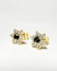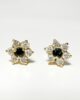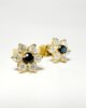 Sublime pair of 18-carat gold stud earrings from the 50s, each set with a 0.1-carat brilliant-cut sapphire and haloed with 6 0.05-carat brilliant-cut white sapphires. A delicate and classic piece to wear alone or combined with other buckles.