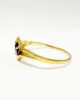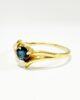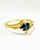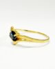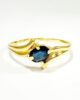 Sublime ribbon-style 18K yellow gold 60s ring set with a 0.5 carat oval-cut sapphire in a sublime deep ultramarine blue in a prong setting centered on a ring forming two gadrooned arabesques. A vintage jewel with a timeless style, to be worn every day without moderation.