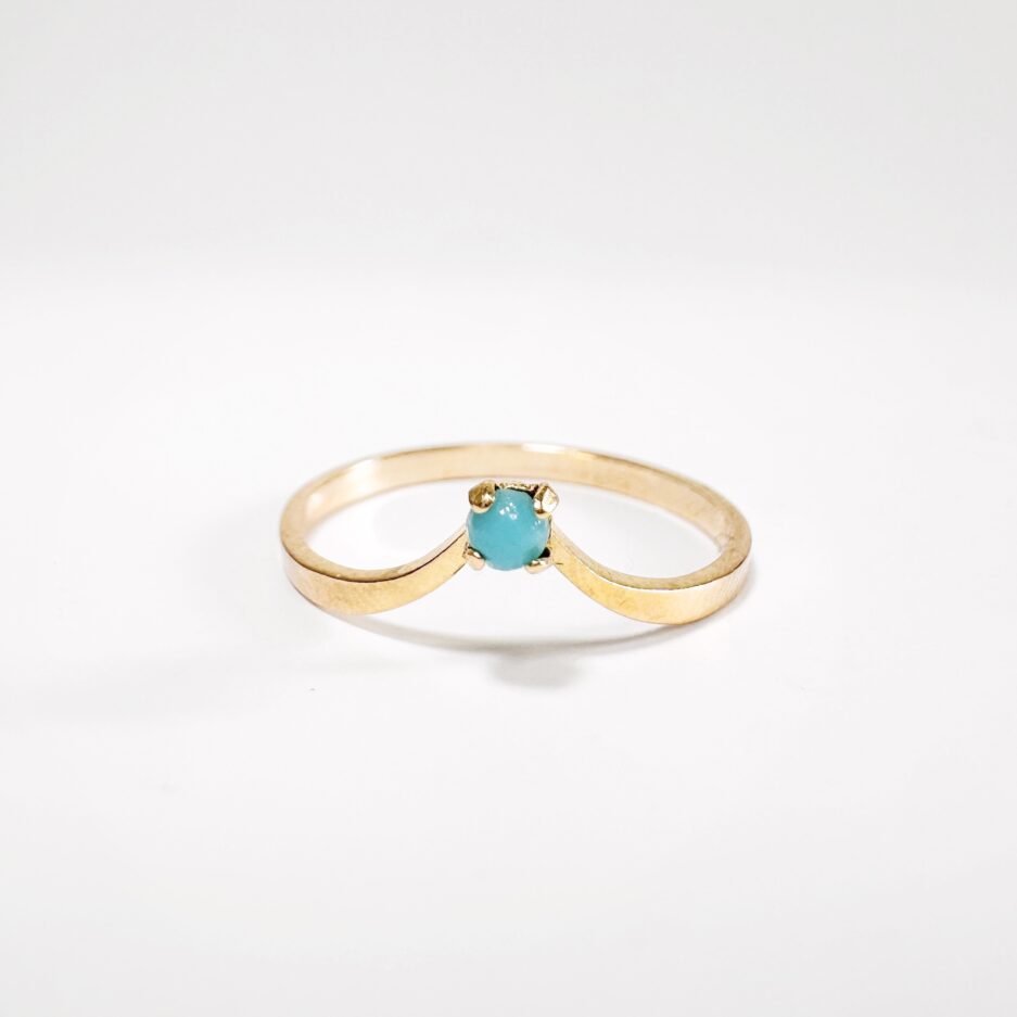 Lovely chevron ring from the early 19th century Second Empire period in 18 carat pink gold set with a small turquoise ball of approximately 0.02 carats in prong. A piece full of finesse and contrast, between the blue of the turquoises and the warmth of the ring.