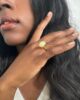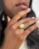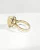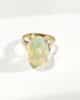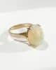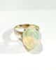 Stunning 18k yellow gold ring from the 50s adorned with an impressive 5.84-carat Austalian opal cabochon with captivating iridiscent reflections. Translucent and luminous, the stone offers an infinite play of colors, ranging from milky white to flamboyant orange, and an iridescent glow ranging from pale yellow to bluish green.