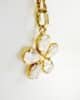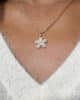 Sublime pendant from the 70s in 18 carat gold in the shape of a flower composed of 5 petals of white sapphires. Each petal is formed by a 0.4-carat pear-shaped white sapphire in a prong setting. A piece of incomparable brilliance and vibrance, to be worn on a thin chain.
