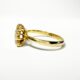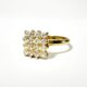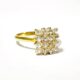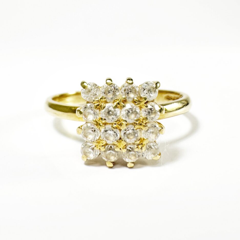 Sublime ring from the 70s in 18-carat yellow gold formed by a simple band in the center of which rests a square otif set with 16 brilliant-cut white sapphires of 0.03 carats in a claw setting forming a sparkling square. Held on an open bezel that lets light through, the pattern is adorned with a hypnotic brilliance. A delicate and refined ring, with a timeless feminine style.