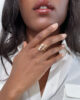 The story: With its three stones – originally three diamonds – the Trilogy ring is a ring with a strong symbolism, commonly associated with time: the past, the present and the future. The interpretation can be extended to other “triptychs”: beauty, strength and wisdom; Man, Heaven and Earth; the head, the heart and the mind… If we retain the symbolism of time, the Trilogy ring marks the three fundamental stages of a couple’s life and is therefore particularly suitable for an engagement ring full of meaning. With its three sapphires, we can associate this ring with the symbolism of the gem of the month of September: loyalty, wisdom and good fortune.