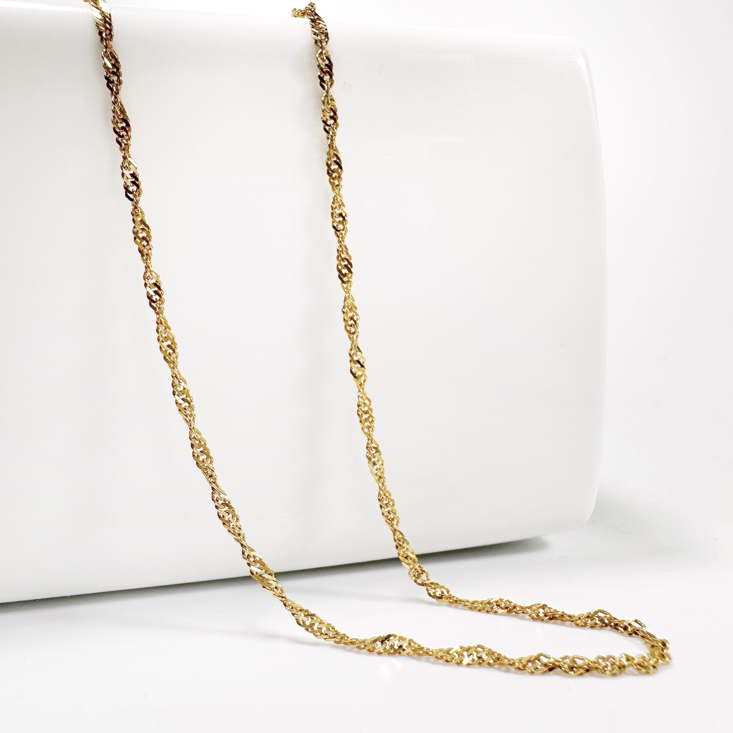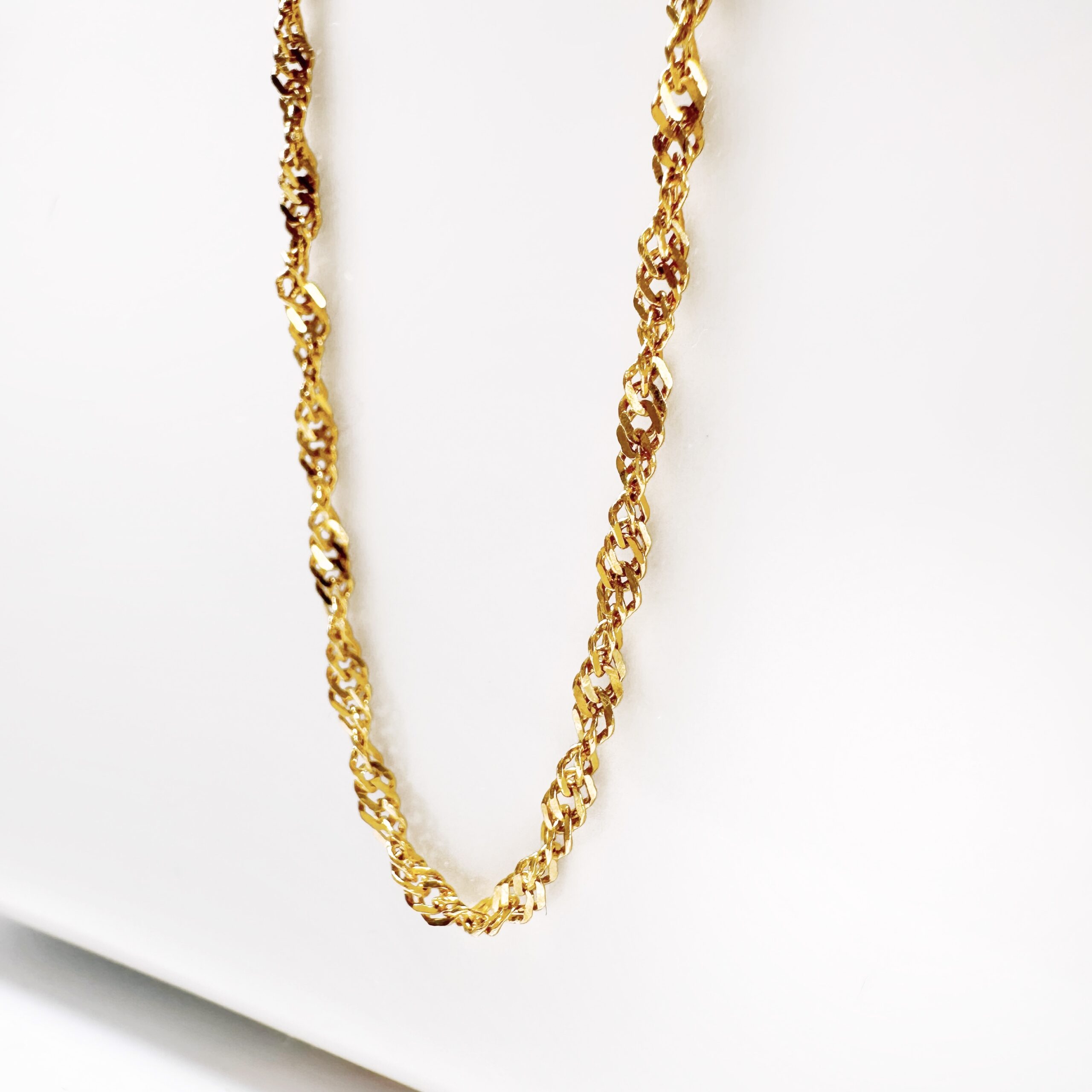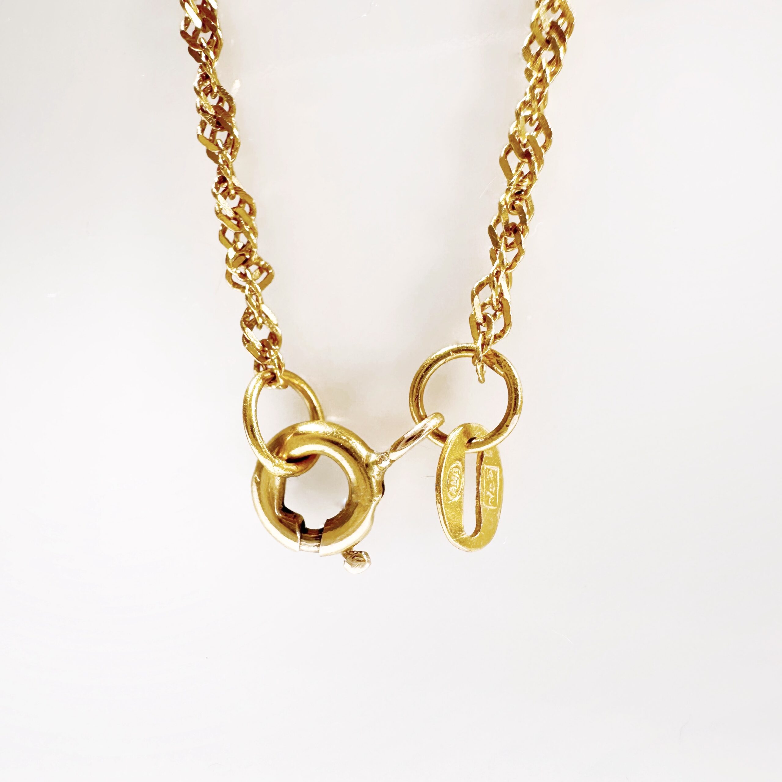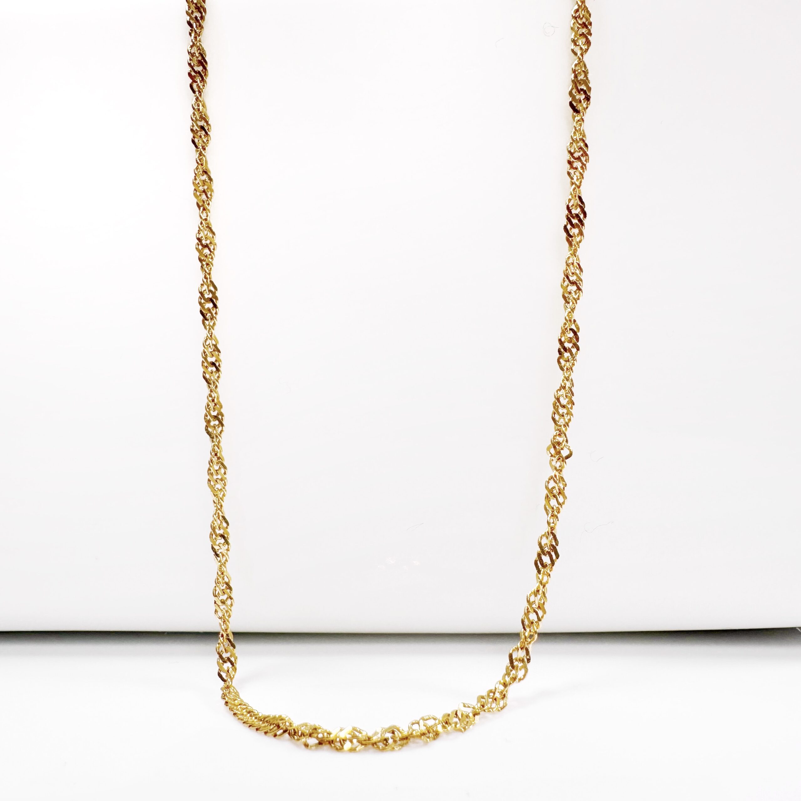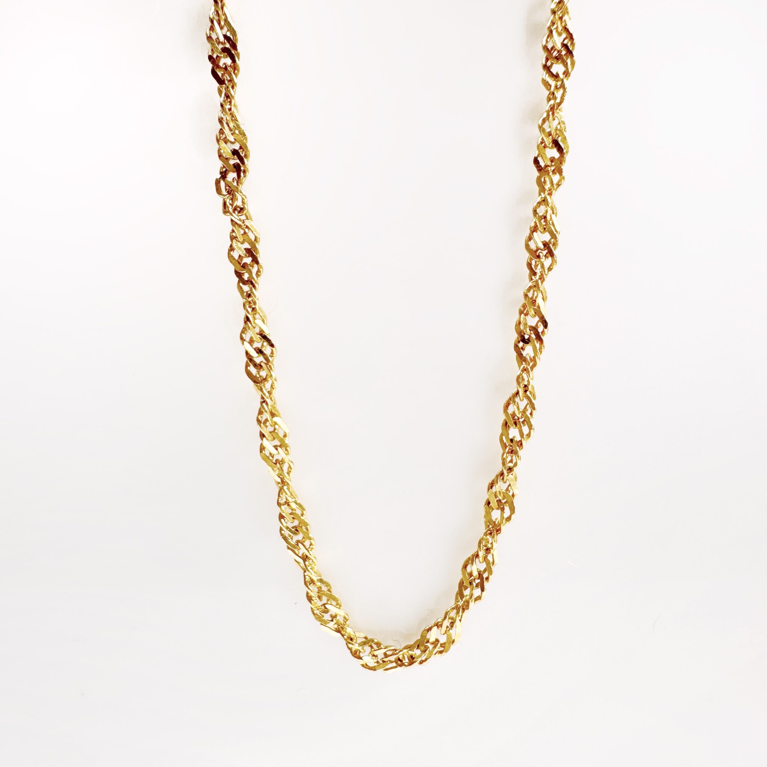 Sublime medium thickness chain with twist link in 18 carat gold, to wear medallions and pendants from medium to heavy weight. This elegant piece can also be worn on its own because its elaborate and shimmering knit dresses the neck on its own. Sold without pendant.
