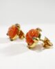 Gold, Diamond and rose shaped Coral Stud Earrings “Rosalinda”