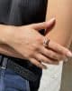 The story: Emblematic of the 40s, tank rings owe their origin to the troubled period that Europe was going through. Gold was an increasingly rare and coveted material, just like precious stones, which were almost disappearing from the market. This is why people started melting their possessions into gold for safe keeping, in the form of a ring that was easy to carry around. Tank rings present heavy and imposing shapes and their patterns are reminiscent of tank tracks. This ring, can also be called a “bridge” ring because of the arches on the top of the ring, evoking a bridge.