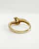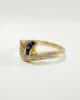 Sublime 70s art deco style ring in 18 carat gold composed of two lines, one set with 3 square-cut sapphires of approximately 0.05 carat each and the other paved with 11 small brilliant-cut diamonds. The two lines intersect to form an open knot revealing a window bringing light and lightness to the ring. Note that this vintage piece has never been worn, so it is perfectly new.