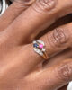 Gold, diamond, ruby and sapphire You and Me ring “Félicie”