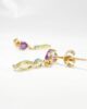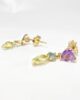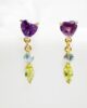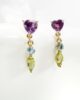 This sublime pair of 18-carat gold dangling earrings dates from the 80s and is formed by a 0.5 carat heart-cut amethyst at the end of which hang a 0.1 carat brilliant-cut aquamarine in a vibrant blue and a 0.2 carat marquise-cut peridot in a tangy lime green. A cheerful and bright piece to wear to complete your most sophisticated outfits or bring a touch of color to your most sober outfits.
