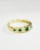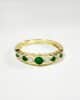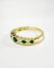 Sublime American half wedding band from the 70s in 18-carat yellow gold composed of a succession of 5 emeralds of 0.15 to 0.3 carats and 4 diamonds of 0.1 0 to 0.15 carats, VVSI1 clarity and H color (colorless to the naked eye). An elegant piece whose fire of diamonds exalts the vibrant beauty of emeralds.