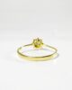 Sublime ring from the 40s in 18 carat gold featuring a sublime 0.2 carat brilliant-cut emerald in a prong setting, haloed with 8 brilliant-cut diamonds of 0.05 carat. This cluster motif is centered on a fine yellow gold band. A classic and elegant piece where the contrast of yellow gold and diamonds sublimates the lush green of the emerald.