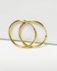 Superb pair of fine hoop earrings dating from the 70s in 18 carat gold. Tubular in shape, these thin mid-diameter hoop earrings are secured by a hinged clasp for an effortless earring wear and removal. The must-have and timeless pair of earrings, a classic to have in your jewelry collection.