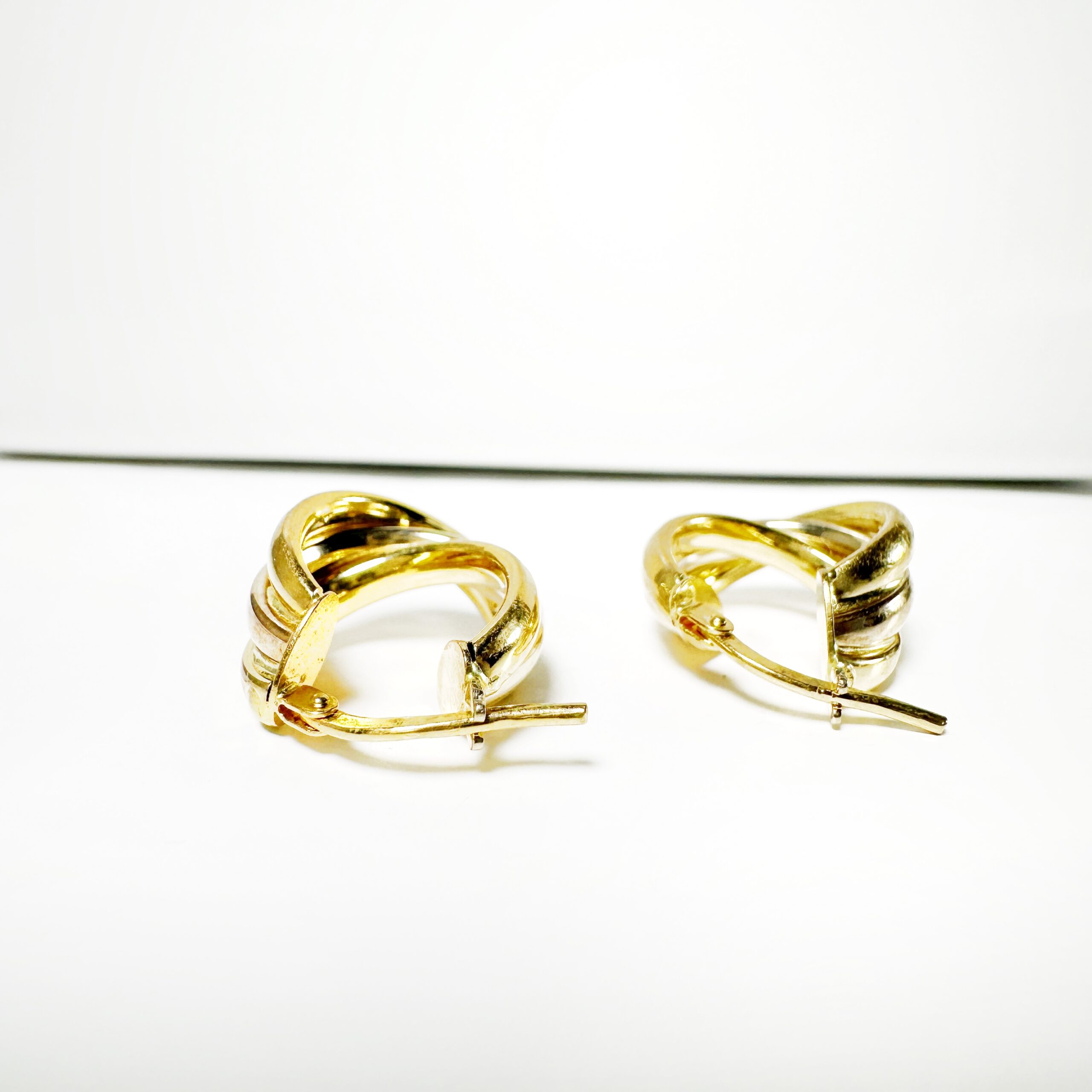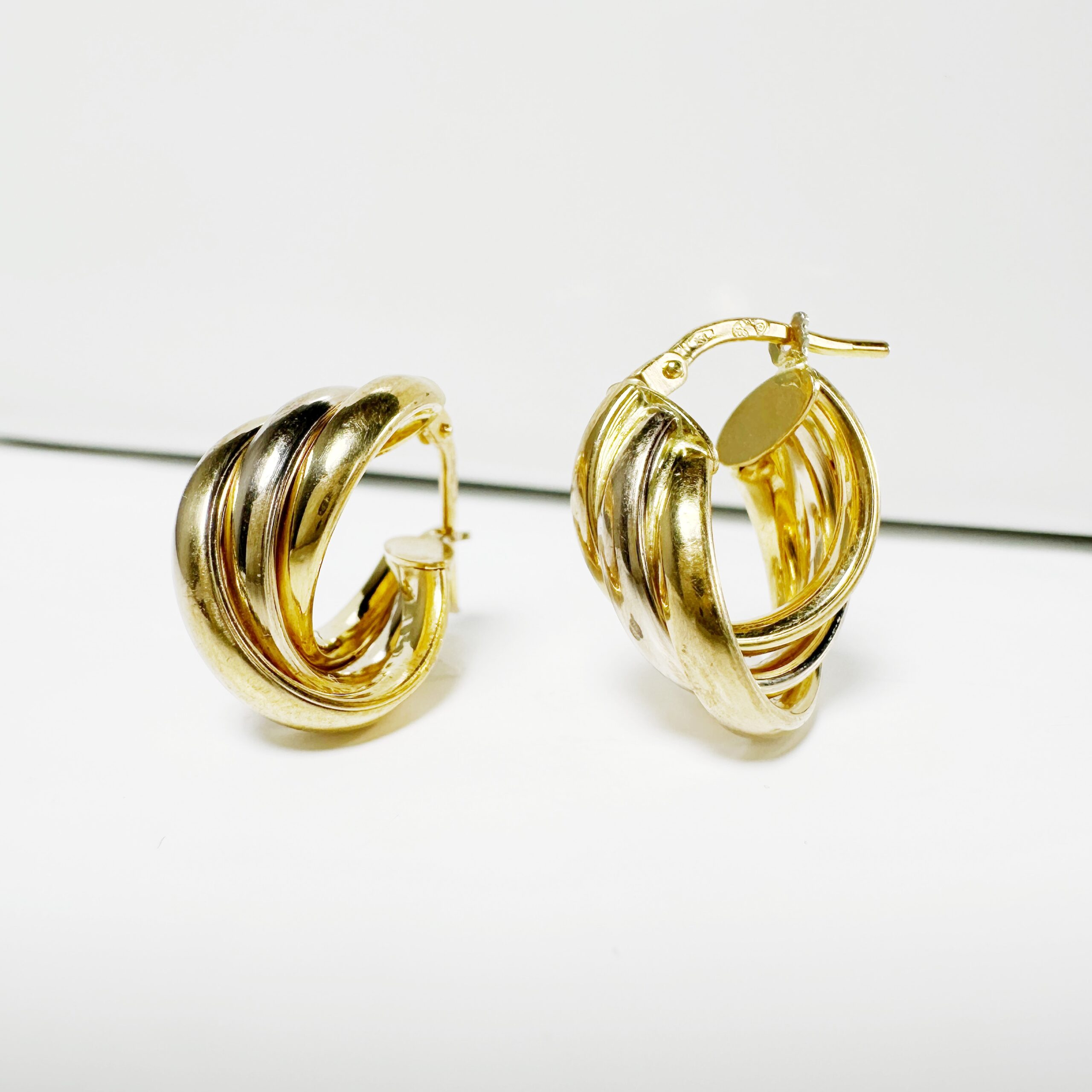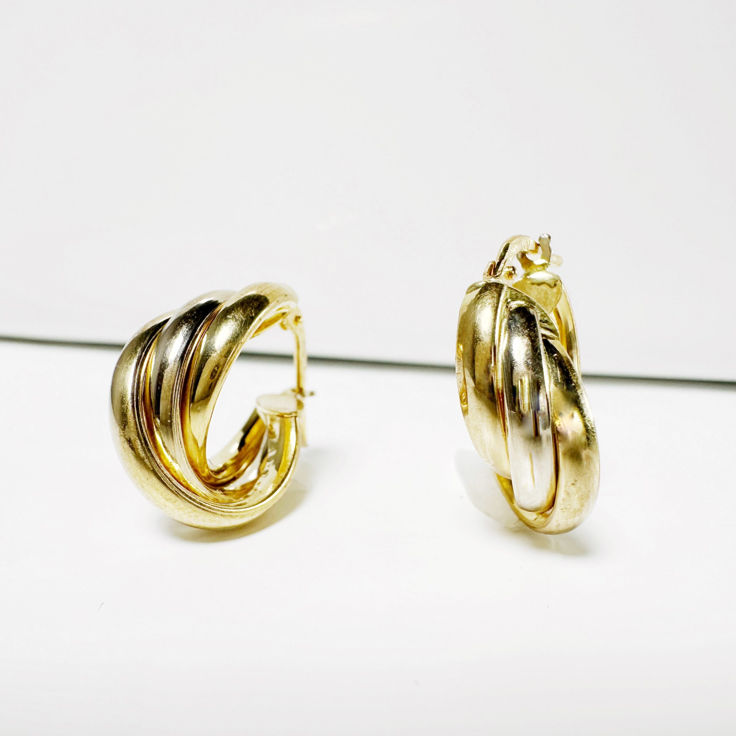 Sublime pair of open hoop earrings from the 50s formed by 3 18-carat yellow gold bands. This jewel is both evocative of a vintage style (evocative of the “Trinity” style created in 1925) and the timeless design of the hoop. An elegant and comfortable piece to wear every day.