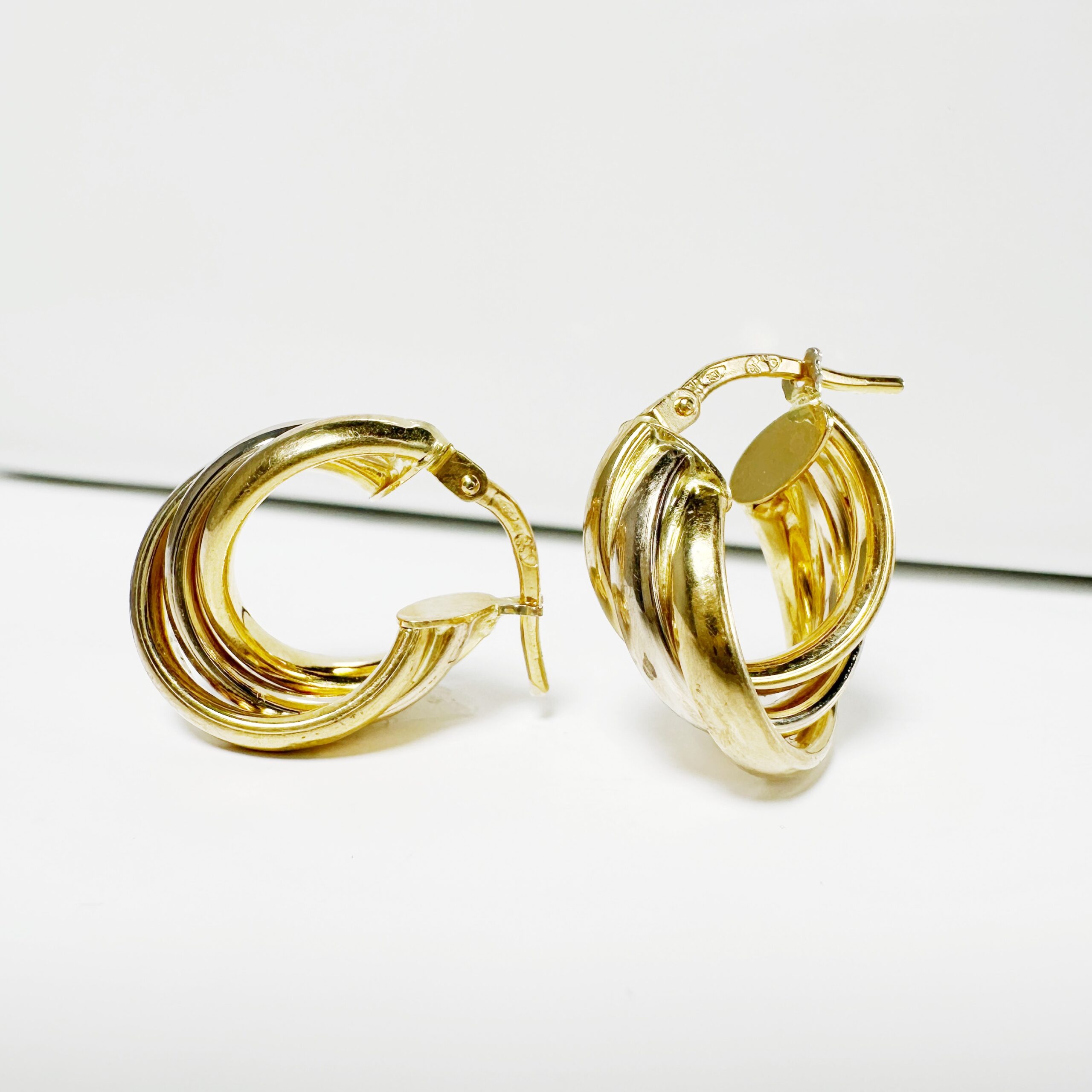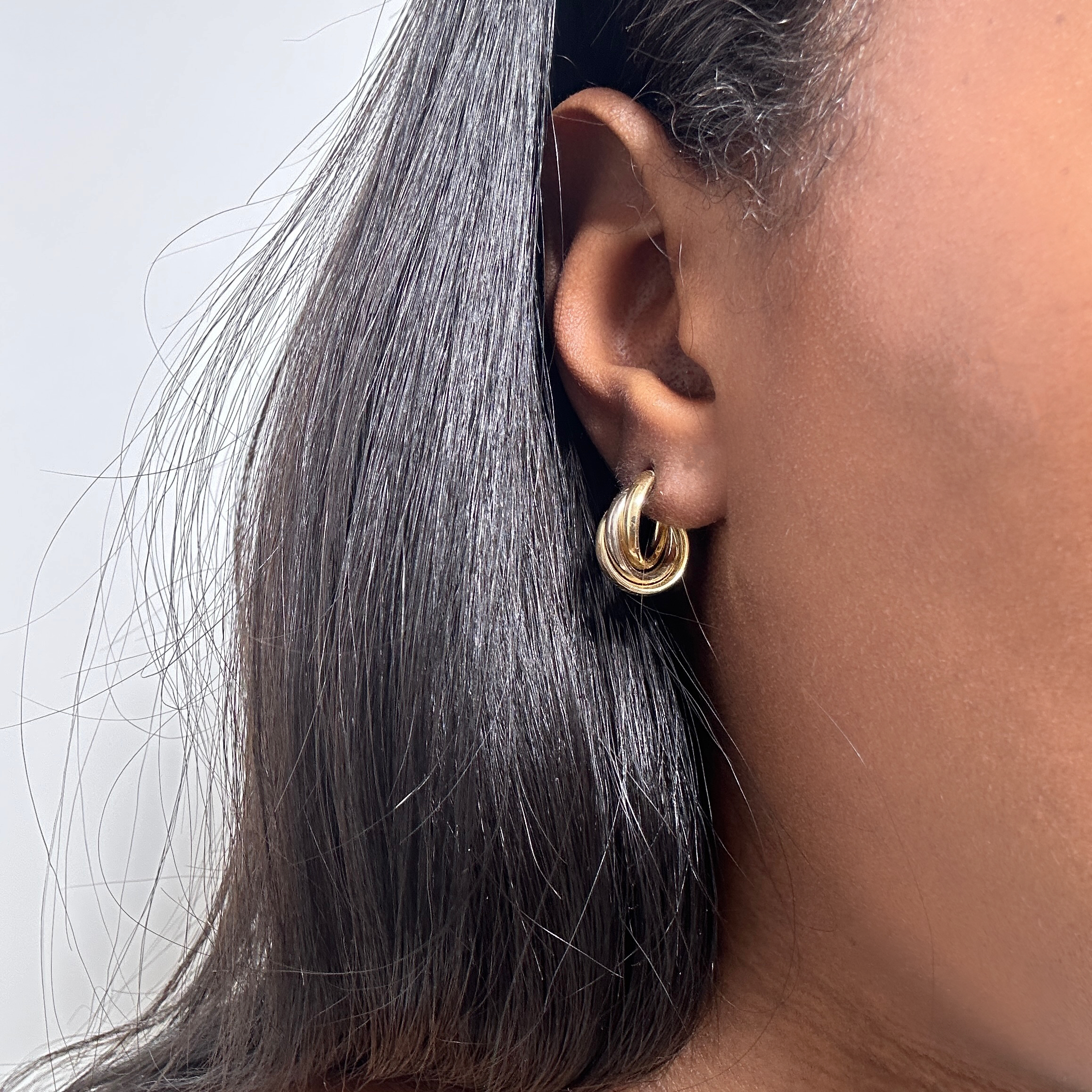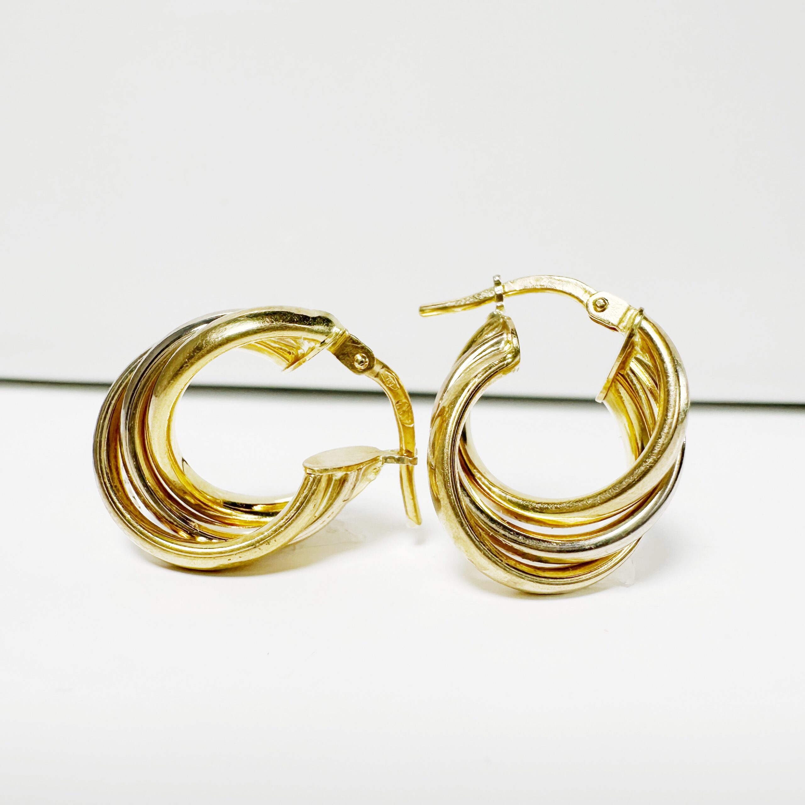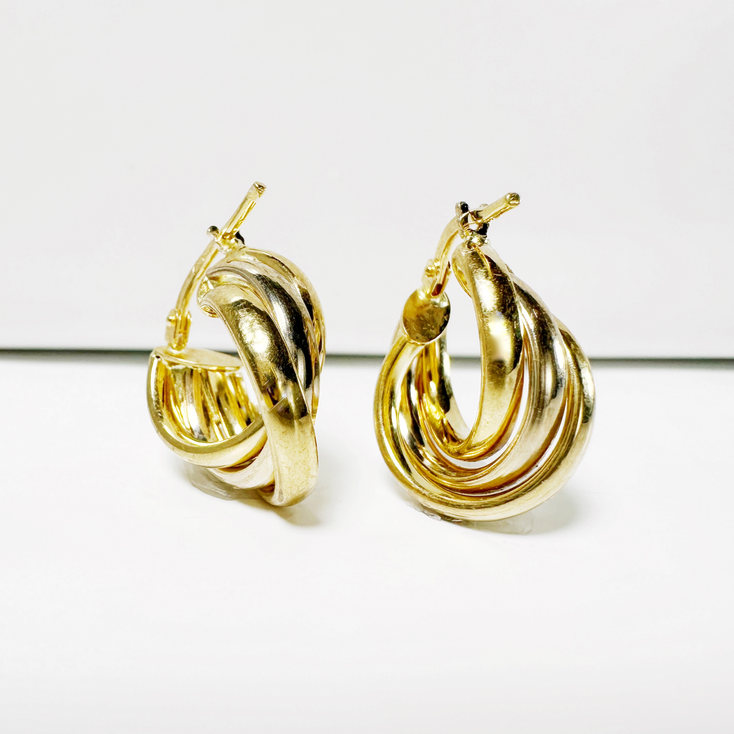 Sublime pair of open hoop earrings from the 50s formed by 3 18-carat yellow gold bands. This jewel is both evocative of a vintage style (evocative of the “Trinity” style created in 1925) and the timeless design of the hoop. An elegant and comfortable piece to wear every day.