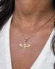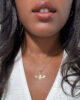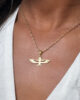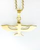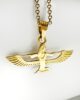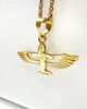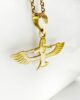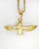 Sublime pendant from the 60s in 18-carat gold featuring the symbolic motif of the Egyptian goddess Isis with outstretched wings, held by a mobile bail engraved with hieroglyphs. A symbolic piece full of details, which captures light and attention, like a beam of light around the neck.