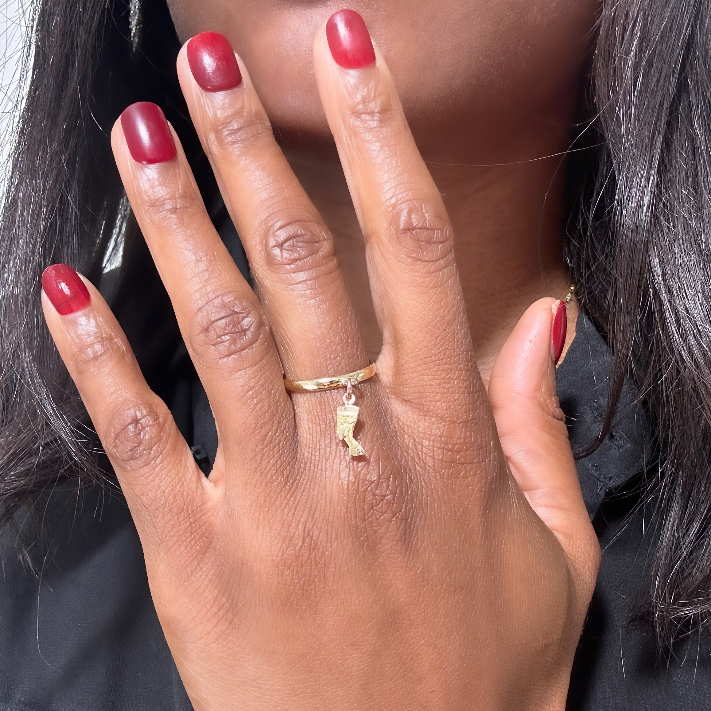Gold Nefertiti charm ring “Nubia”