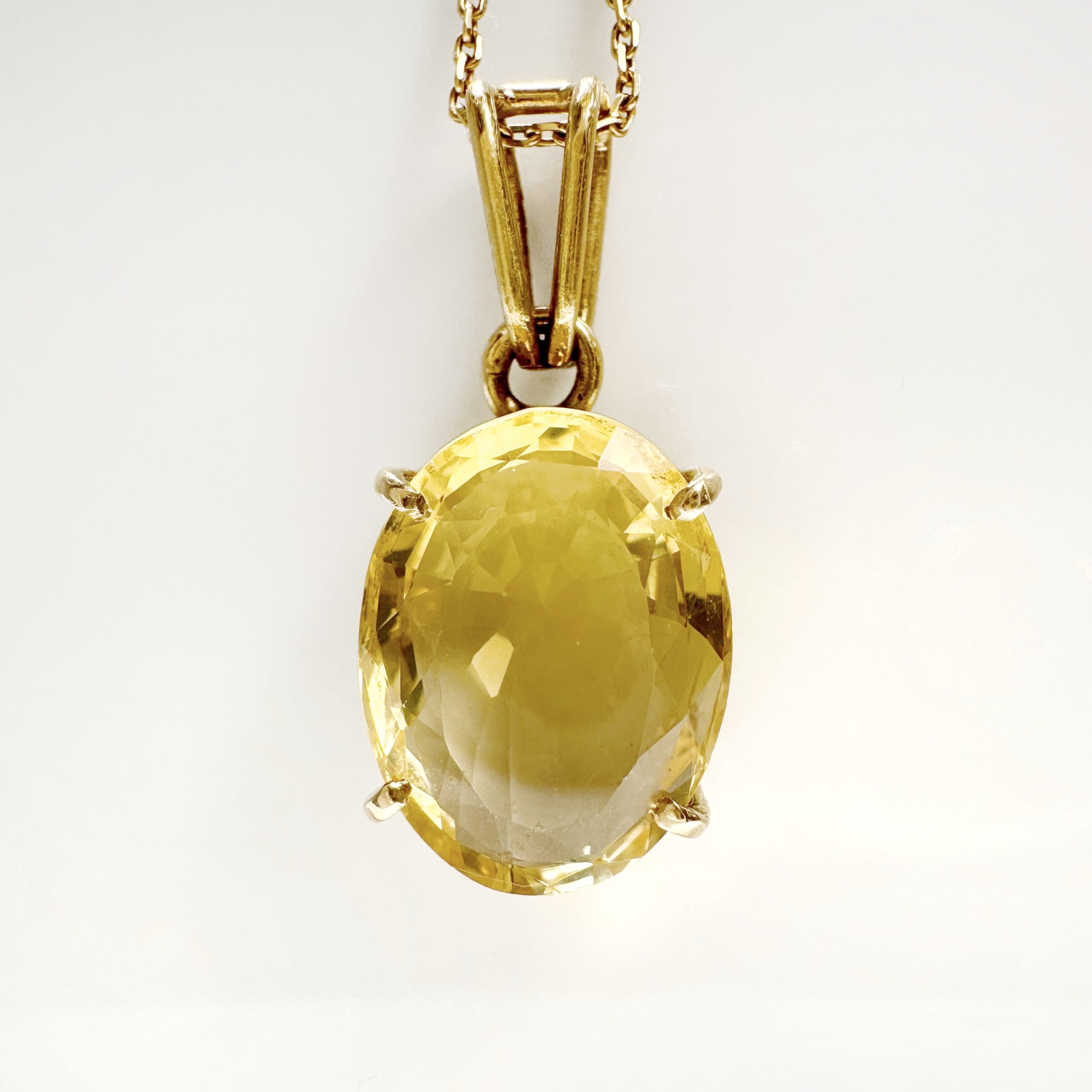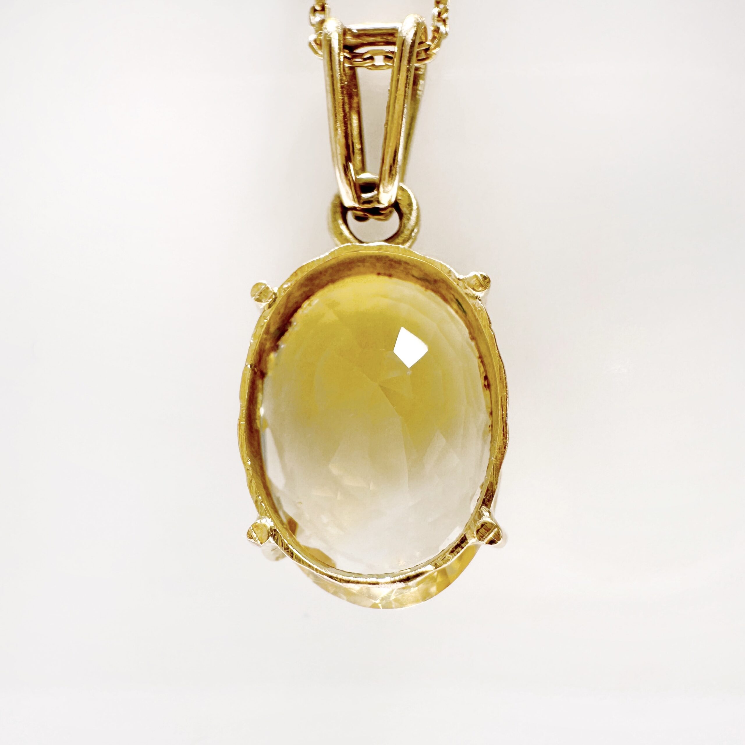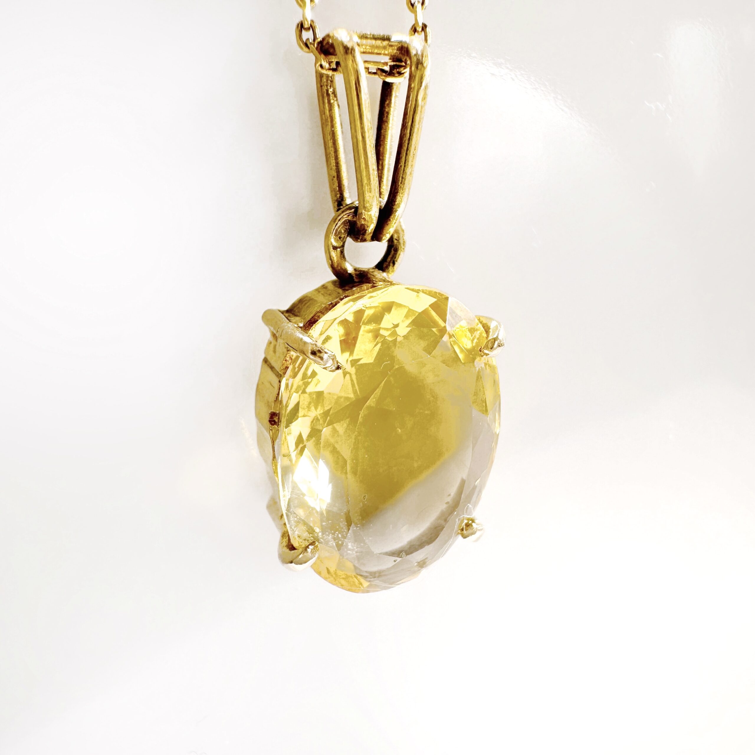 Gold oval citrine solitaire pendant “Lemona”