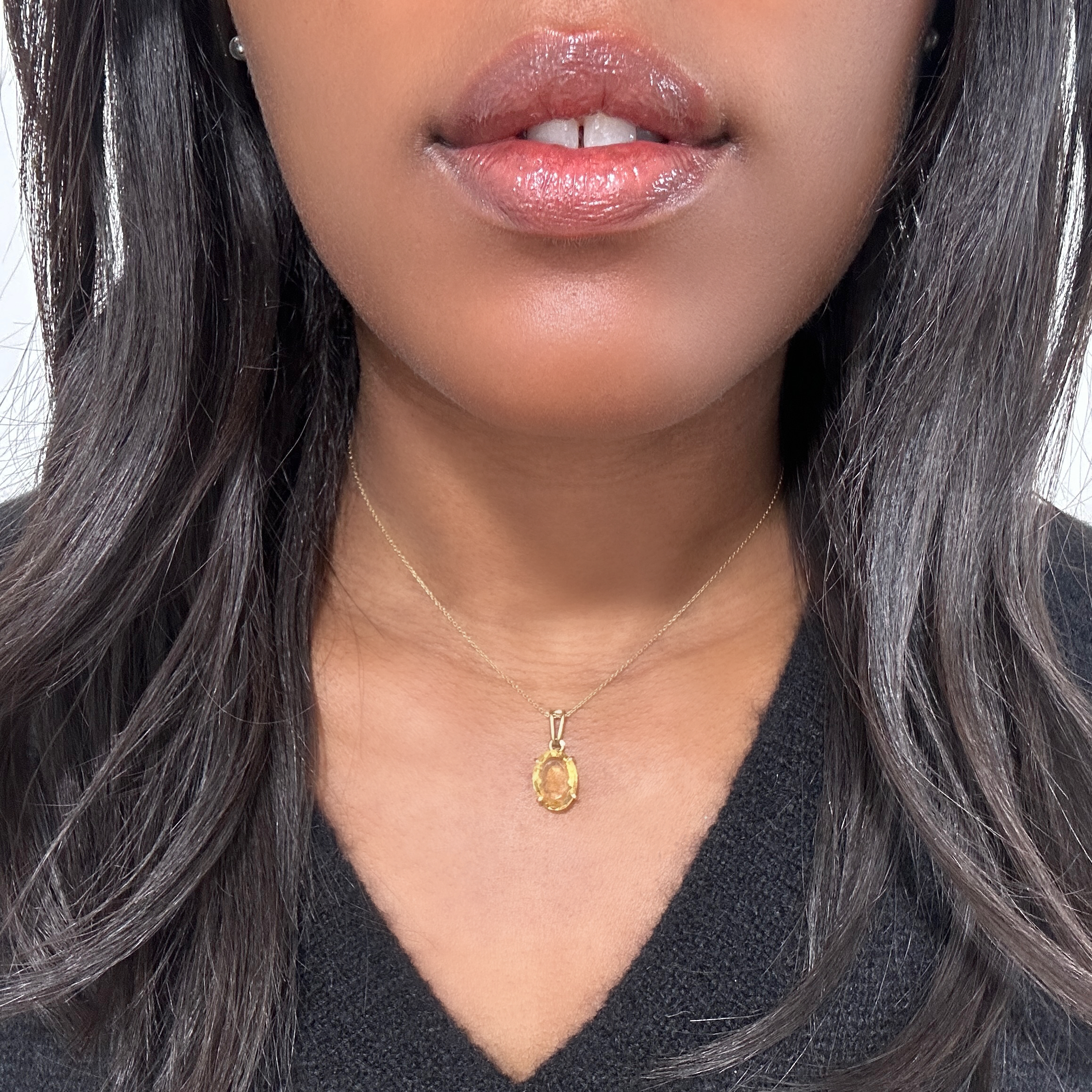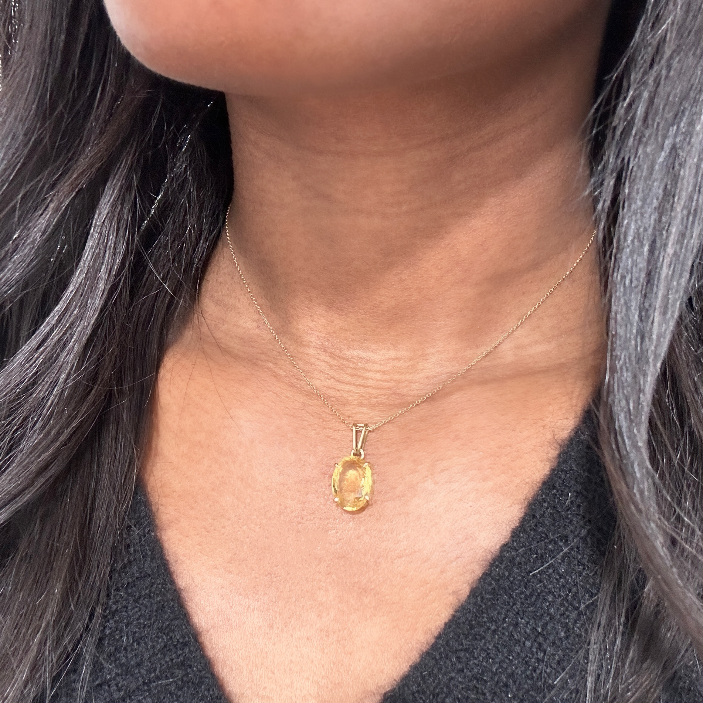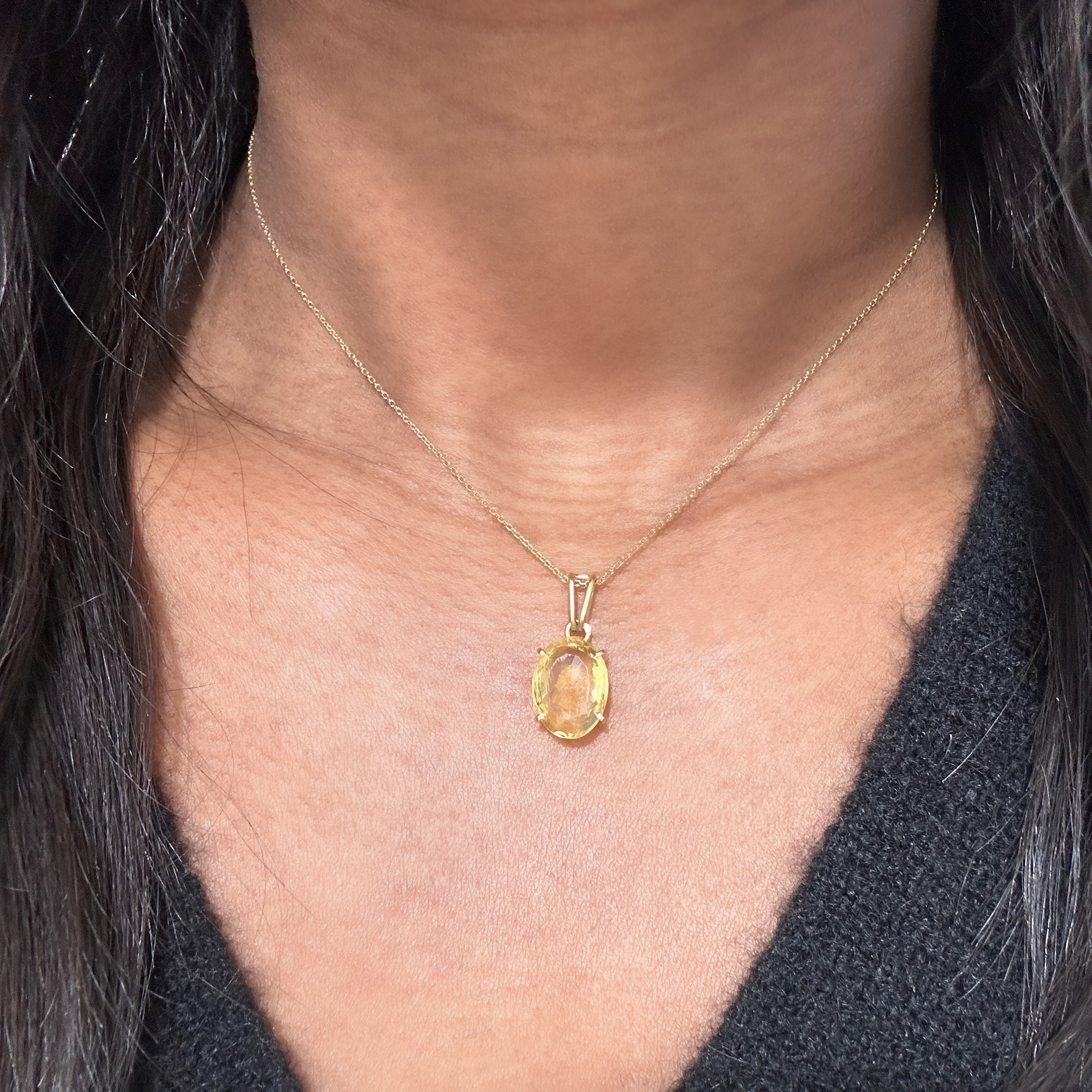 Gold oval citrine solitaire pendant “Lemona”