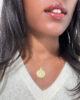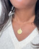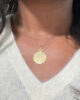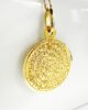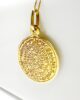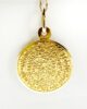 Sublime 14k yellow gold medal from the 80s depicting the famous and enigmatic Phaistos disc. Held in place by a movable bail, this shimmering gold medal is engraved on each side of the 241 symbols of the ancient artifact. A bewitching piece that is both rich in history and captivating in its beauty, capturing light and attention. Sold without chain.