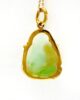 Sublime 70s pendant in 18k gold featuring a jade Buddha motif set in a prong setting on a gold frame that follows the contours of the pendant. Held in place by a mobile bail, the pendant can be worn on a simple fine to medium gold chain.