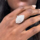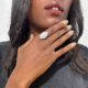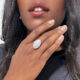 The story: The Marquise ring is a type of oblong ring created in France. It is characterized by a central gemstone haloed with smaller stones, most often diamonds.