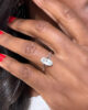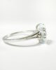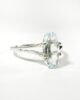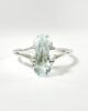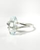 Delicate 18k white gold 70s ring set with a 0.6-carat elongated oval-cut aquamarine set in a claw between two branches coming together to form a simple band. The translucent lagoon blue stone rests on an open bezel for the most elegant and luminous effect.