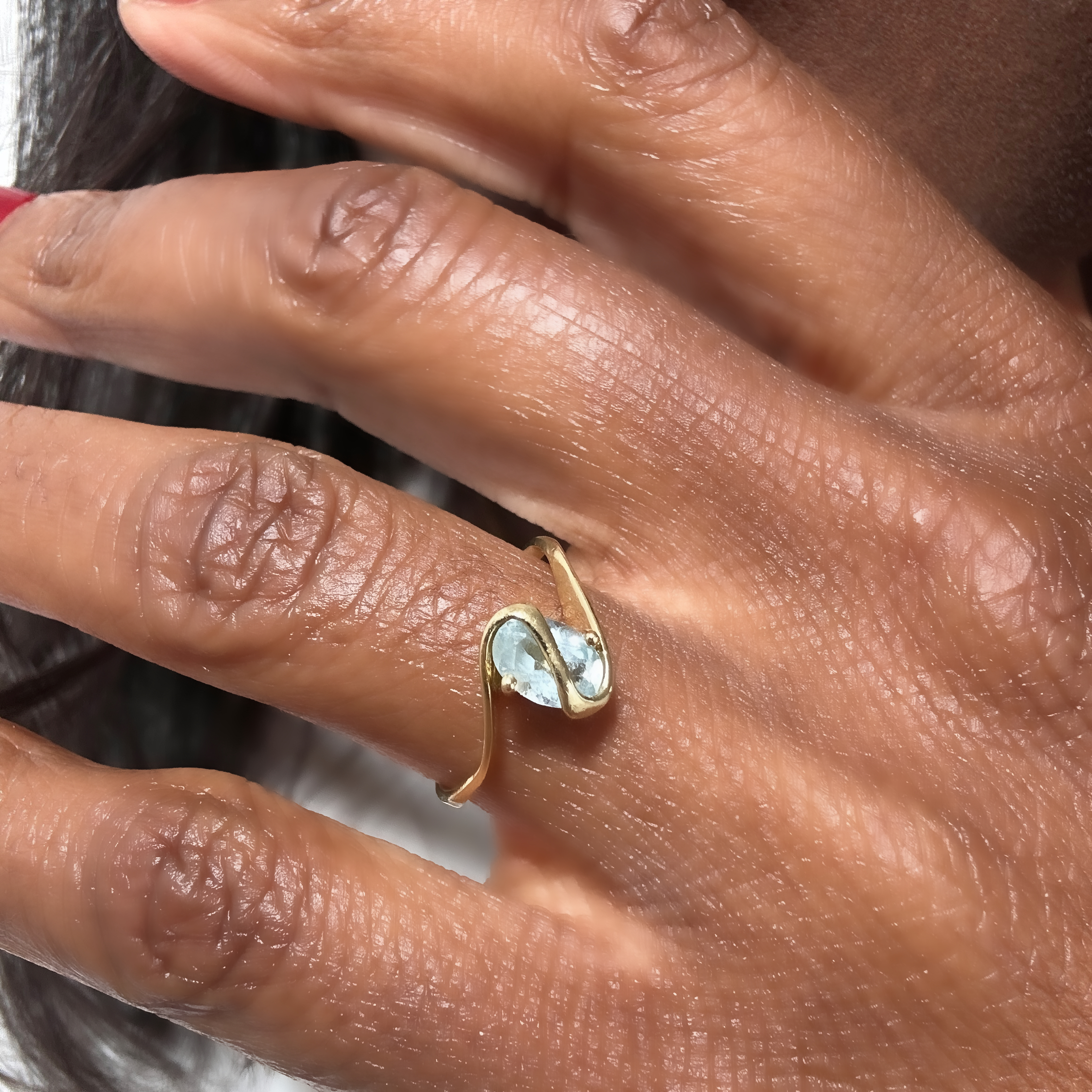 Oval-cut gold and aquamarine solitaire ring “Marea”