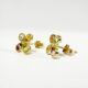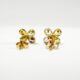 Elegant pair of 18k gold earrings with a four-petal flower motif in yellow gold set with 4 pastel teardrop-cut gems in a bezel setting. A 0.2-carat aquamarine, peridot, citrine and amethyst follow one another for a joyful and elegant effect. The pair is secured with a butterfly clasp for comfortable everyday wear.