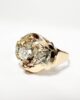 Stunning 18k rose gold 40s ring featuring a shimmering circular motif centered by a sublime 0.25-carat VVSI clarity and F (colorless) brilliant-cut diamond surrounded by an openwork rope pattern and two chiseled white gold lines. The epitome of retro style, both sophisticated and easy to wear every day.